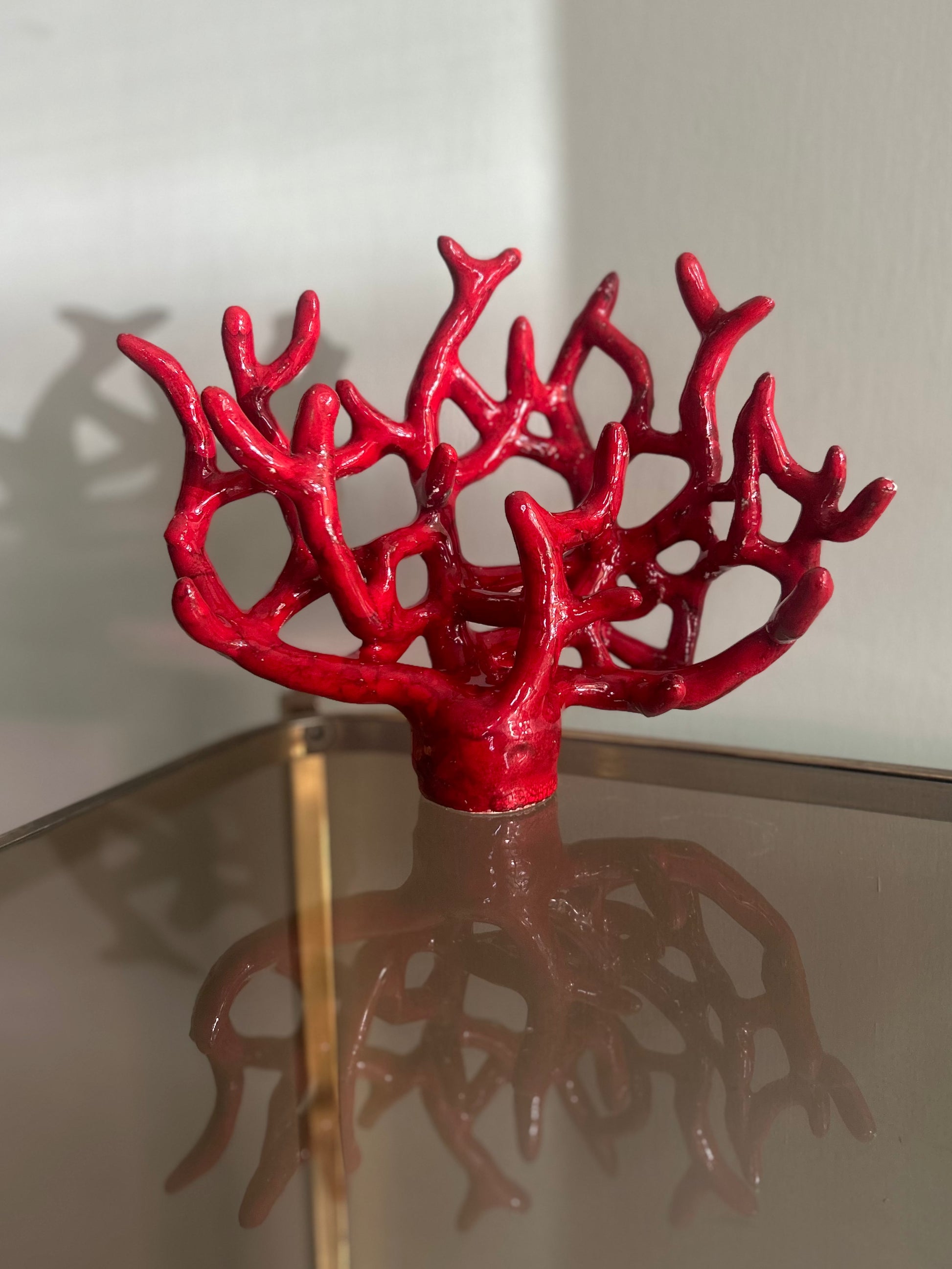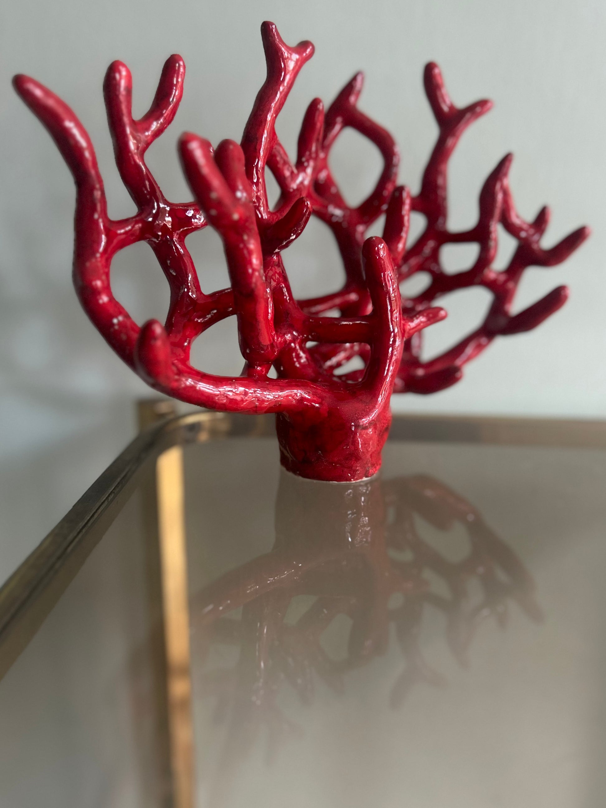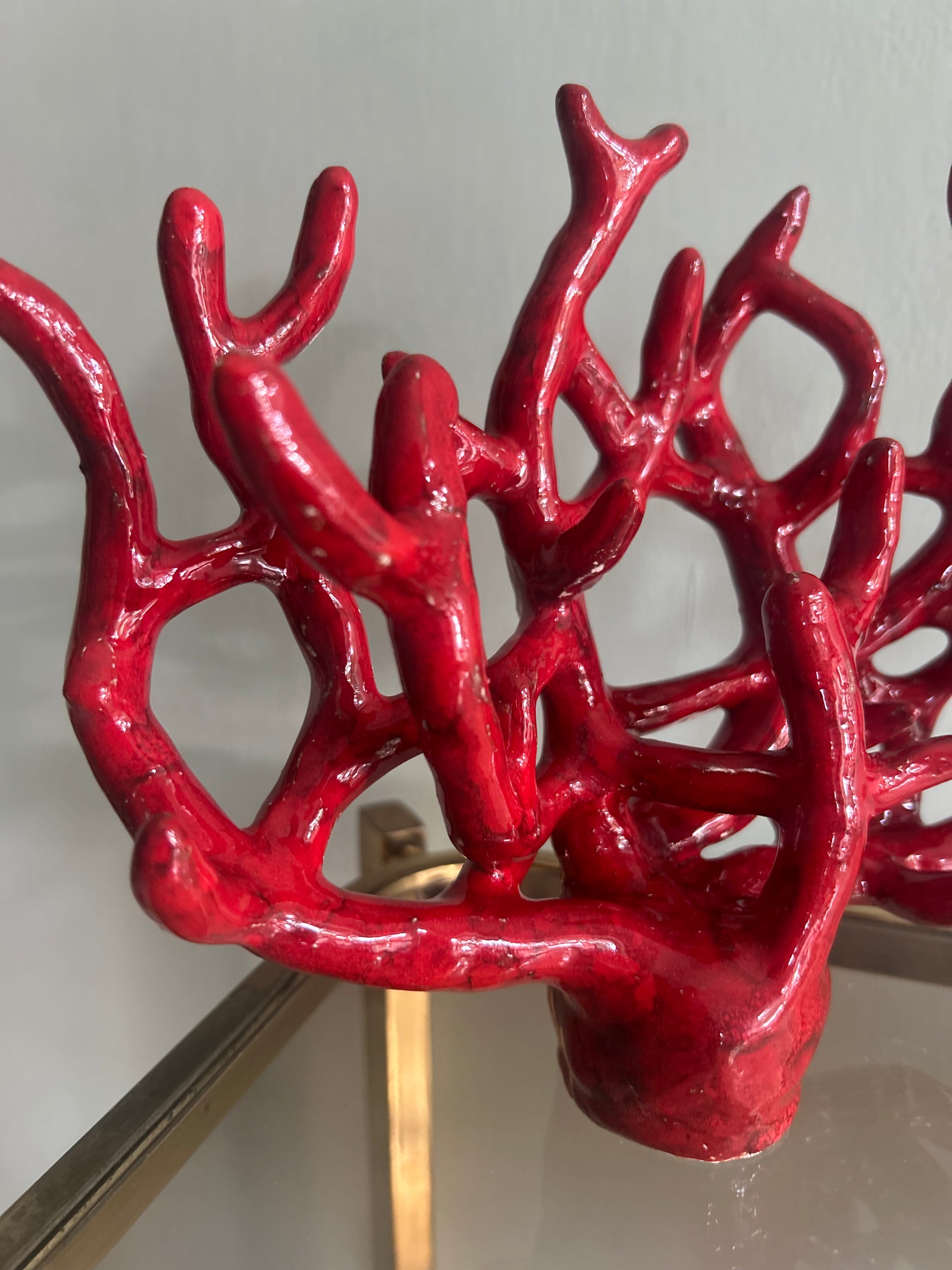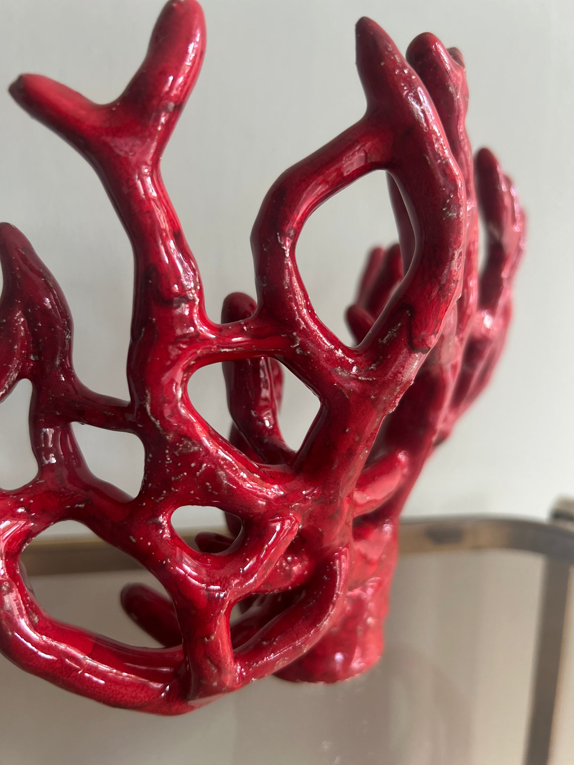 Corallo realizzato a mano in ceramica con argilla bianca sabbiata e smalto rosso